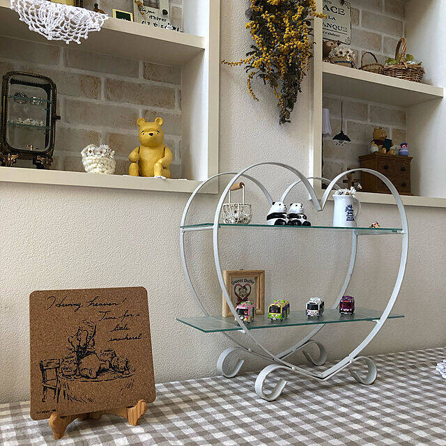 やさしいタッチのイラストが、なんともいえないかわいらしさの鍋敷きを飾っているユーザーさんです。プーさんのイラストも、コルクの素材感も、ユーザーさんの柔らかいムードのインテリアにマッチしていますね。飾りたくなってしまうというユーザーさんの気持ちに納得できます♡