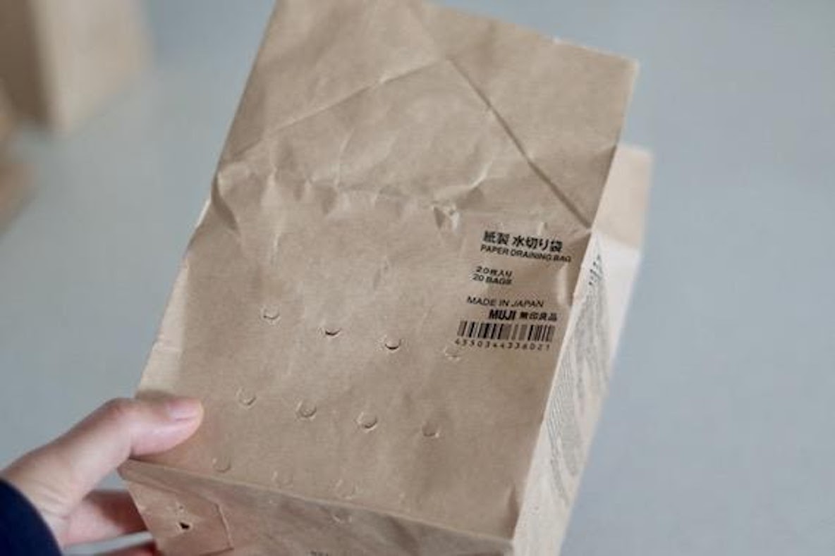 無印良品のキッチンコーナーで見つけた紙製 水切り袋、耐水性の紙でできたエコな商品です。