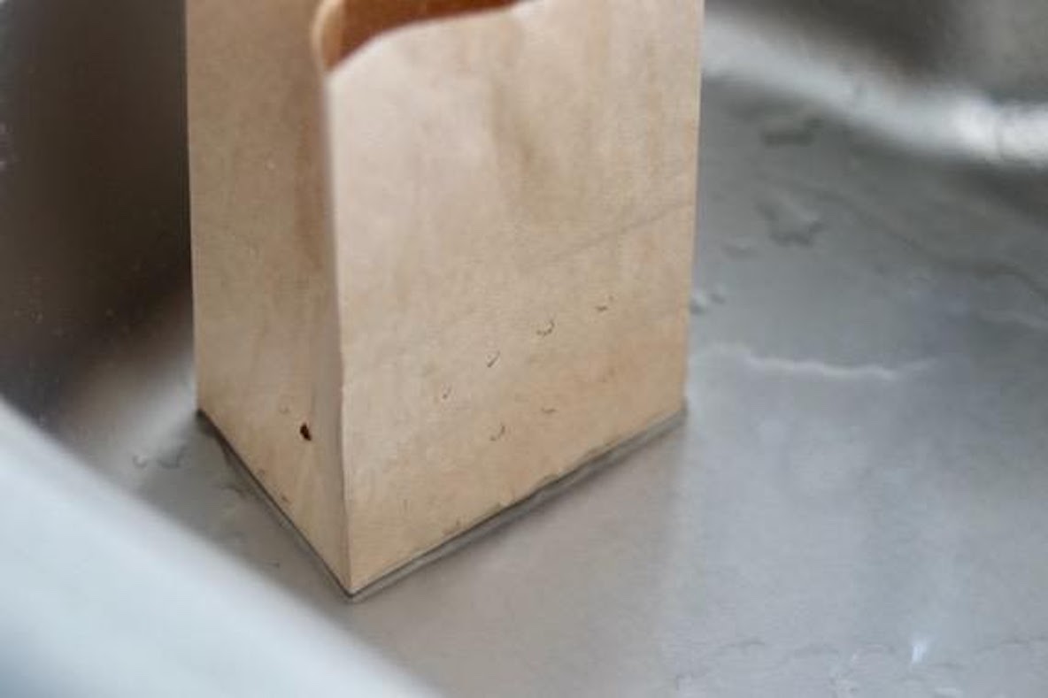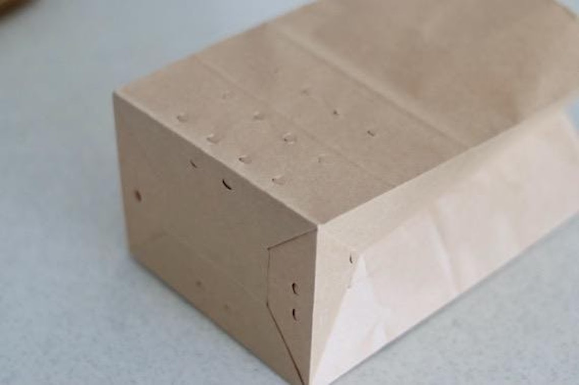 見た目は紙袋なんですが、よ〜く見ると下の方に穴が空いています。