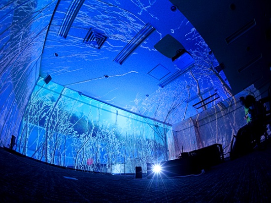 ──今、この部屋では4台のプロジェクターを使って3面の壁と天井に映像を映していますね。最低構成では何台必要になりますか。