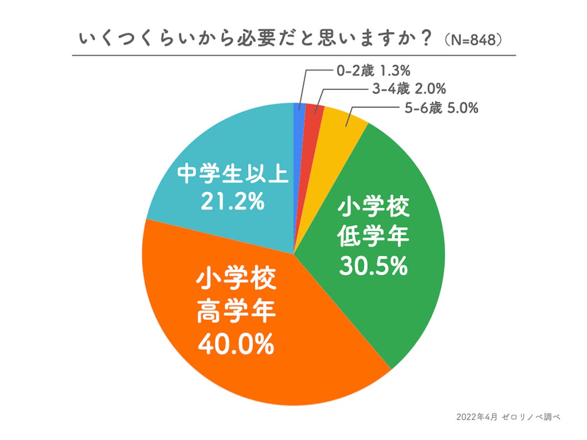 - 必要だと思う年齢は「小学校高学年」が40.0%。