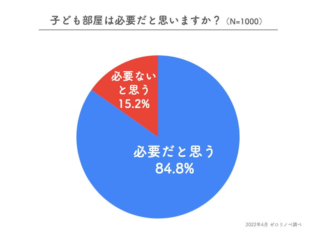 - 子ども部屋が「必要だと思う」と答えたのは84.8%。