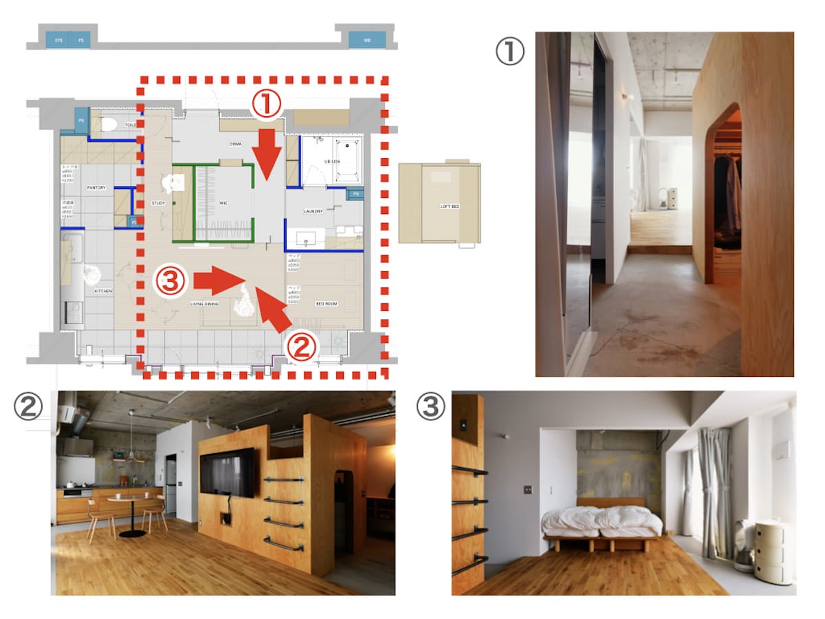 夫婦のベッドスペースのほか、ロフト上段をベッドとして使ってもよし、現在WICとして使っている下段にはドアをつければ個室として使用することもできます。