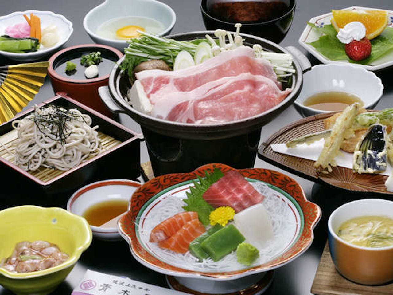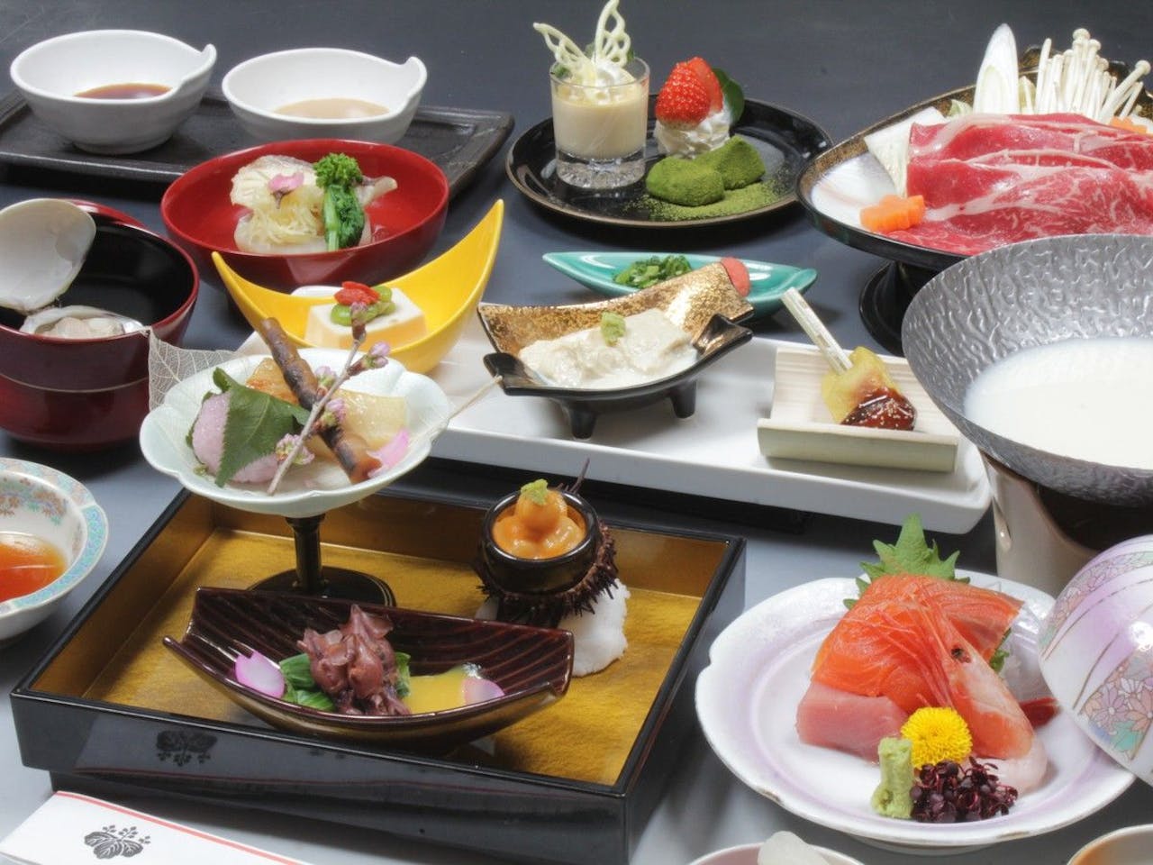 関越自動車道・渋川伊香保ICから車で約30分の場所に佇む「旅館さくらい」。この宿では、群馬の旬の食材を使った季節ごとの和会席を部屋食でいただくことができます。料理は上州牛をメインとした3つのコースから好みのものを選択可能。A4級の霜降りの上州牛をふんだんに使った創作料理プランは特に人気です。