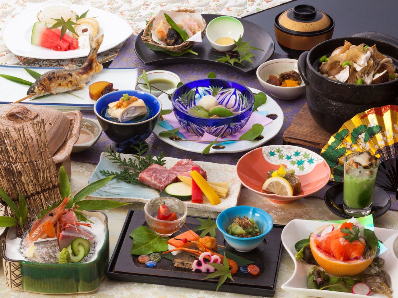 東武鉄道・鬼怒川温泉駅から車で約10分の場所に建つ、鬼怒川プラザホテル。地元の食材を使った和洋中の料理が堪能できる4つの食事処を有しており、好みの料理を選ぶことが可能です。部屋食や個室でいただける和風会席膳のプランでは、地元の旬の食材をふんだんに取り入れた彩鮮やかな料理をゆっくり味わえます。